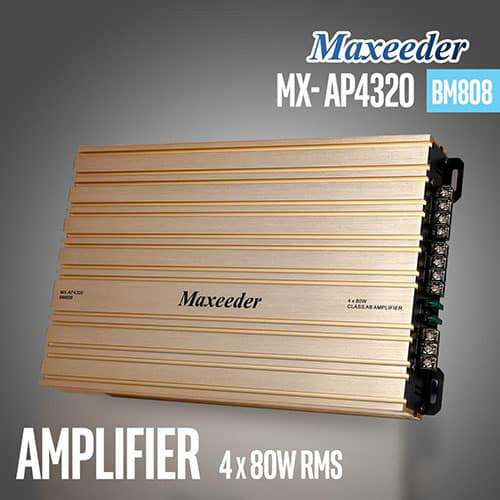 آمپلی فایر مکسیدر مدل Bm808 دارای ۴ CHANNEL و قدرت خروجی 6000W و توان خروجی واقعی ۴X80W آر ام اس میباشد.این امپلی فایر کلاس AB هست آمپیلی فایر مکسیدر مدل Bm808 با توان خروجی ذکر شده و هم چنین قیمت بسیار خوب آن مناسب جهت نصب سیستمهای معمولی میباشد